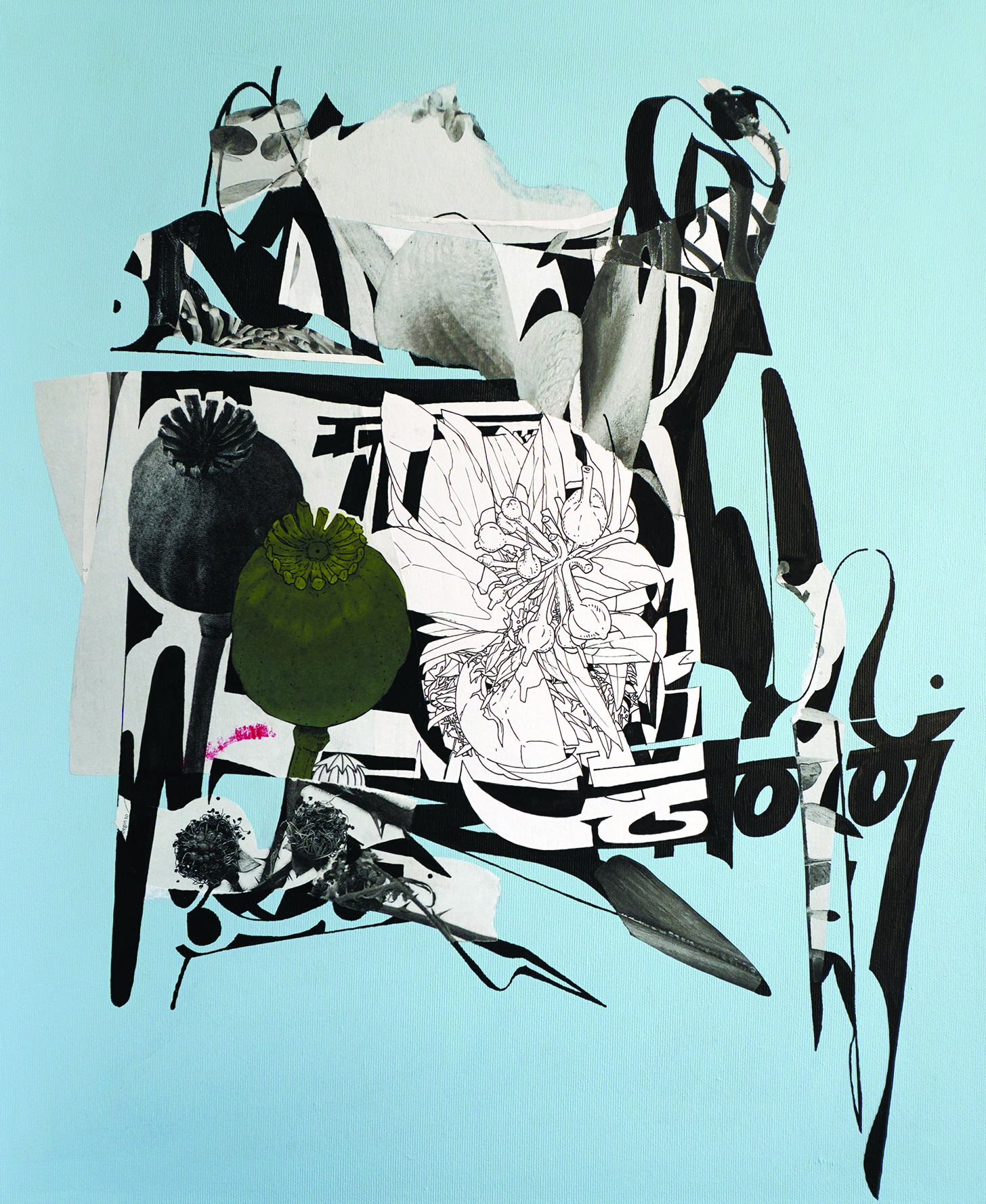 Papircollage og akryl på lærred
