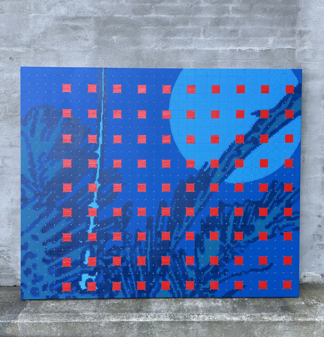 Akryl, olie, spray og pastel på lærred